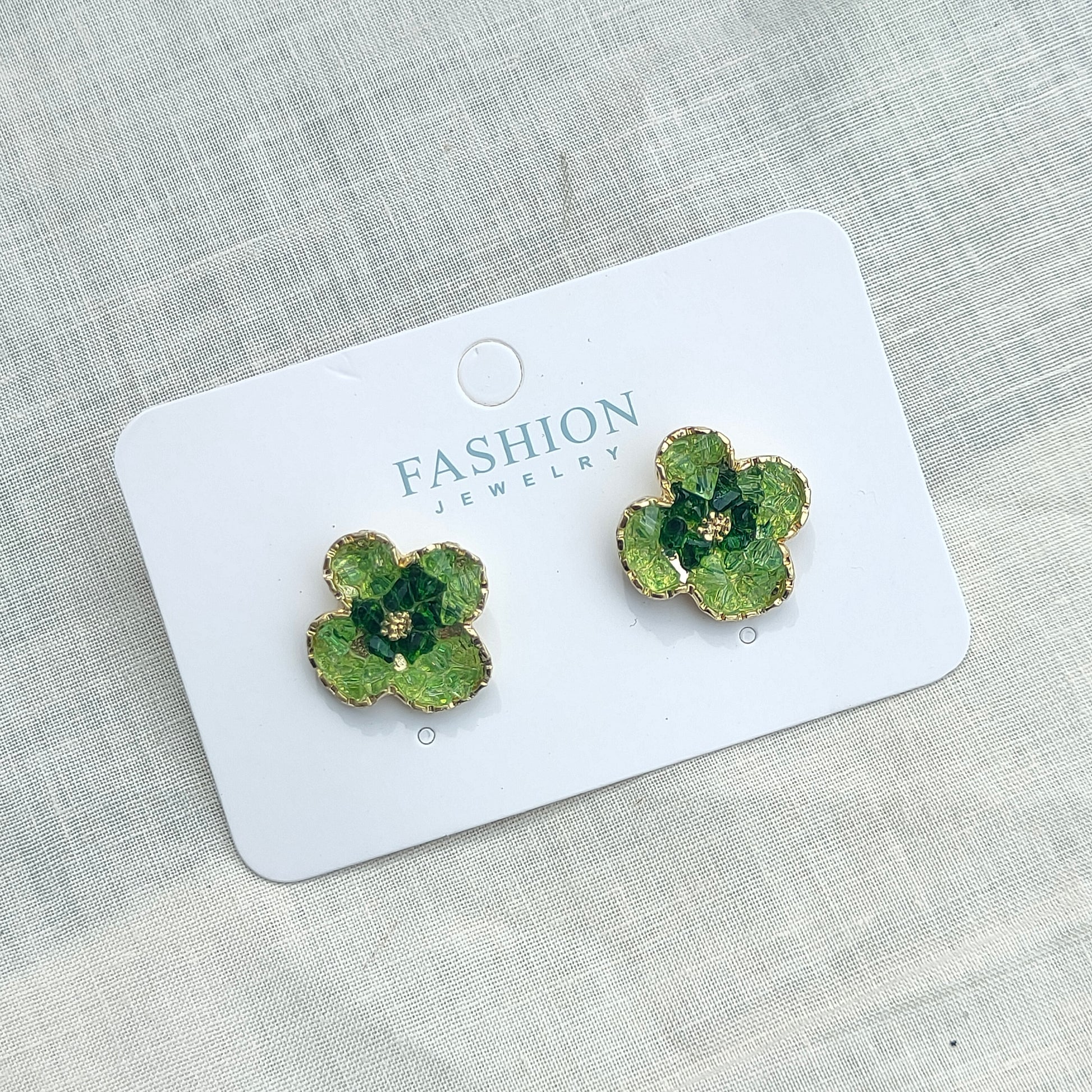 Green Enamel Flower Stud Earrings